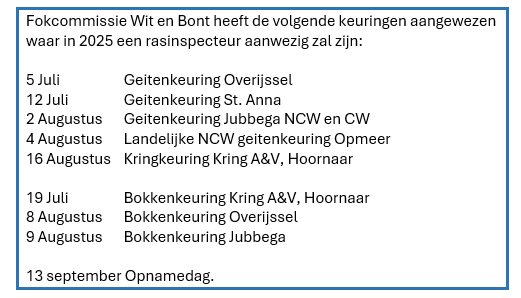 De certificaatwaardige Nationale Geitenkeuring zal op 6 september 2025 worden gehouden tijdens het Nationaal Geiten Event in Hart van Holland te Nijkerk.